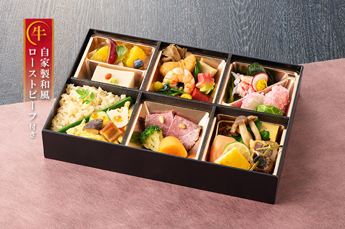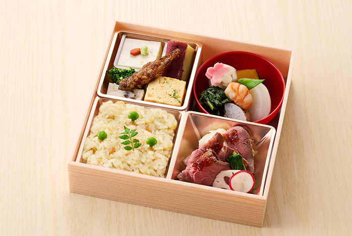 名物ローストビーフをメインにした松花堂スタイルの折詰です。春の献立とともに彩り良く盛り付けたおもてなしにも最適な逸品です。