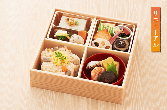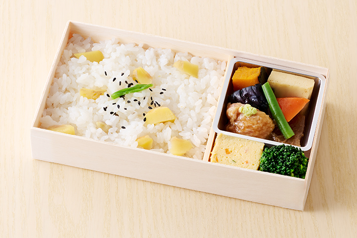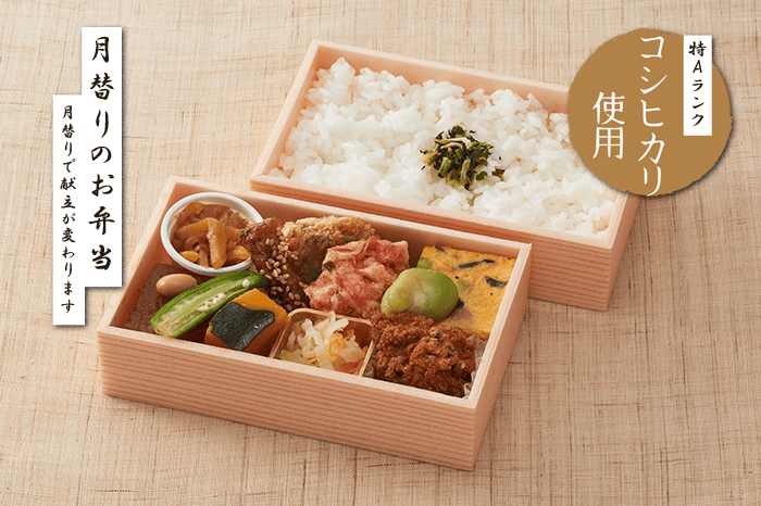 毎月替わる旬の食材を使った炊き込み御飯と季節の副菜を盛り込んだスタンダードなお弁当です。11月12月は「丹波篠山栗御飯」1月は「鯛御飯」2月は「かに御飯」となります。