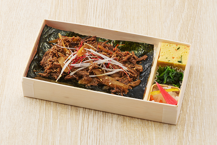 銘牛但馬牛など厳選牛肉を使用した時雨煮をたっぷりのせた新登場の海苔弁当です。甘辛く柔らかく炊き上げた牛肉が人気の一品。